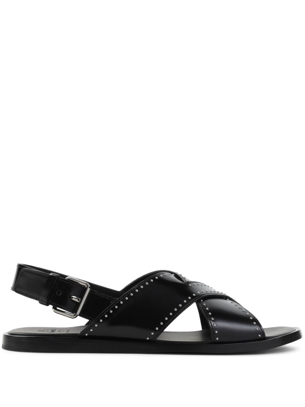 stud-embellished sandals Highlights - Black - Buckle-fastening slingback strap - Round open toe - Crossover strap detail - Flat rubber sole Composition Leather 100%