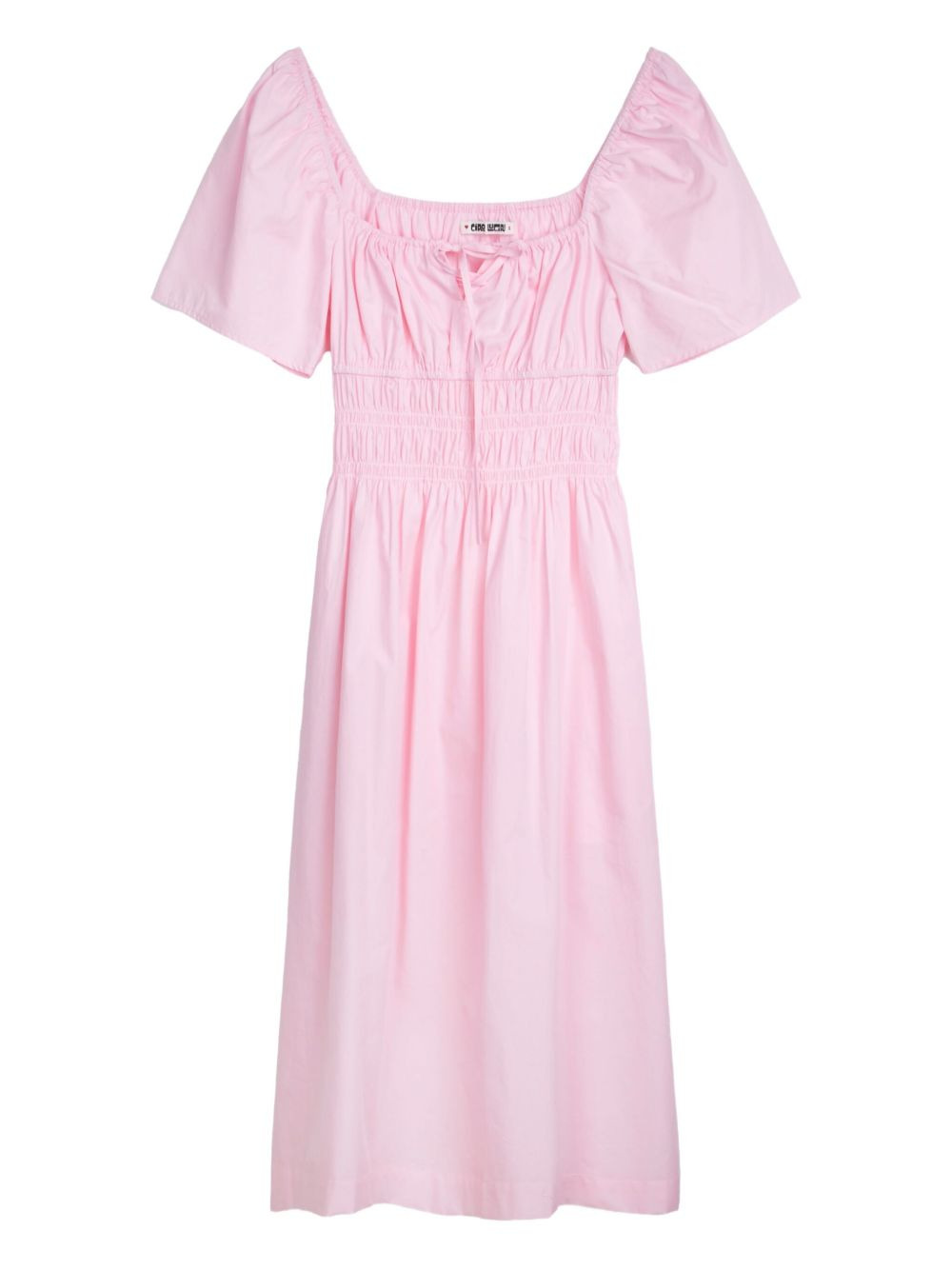 Florella dress Highlights - Light pink - Front tie fastening - Square neck - Smocked waist - Short sleeves Imported Composition Cotton 100% Washing instructions Read Manufacturer Guidelines
