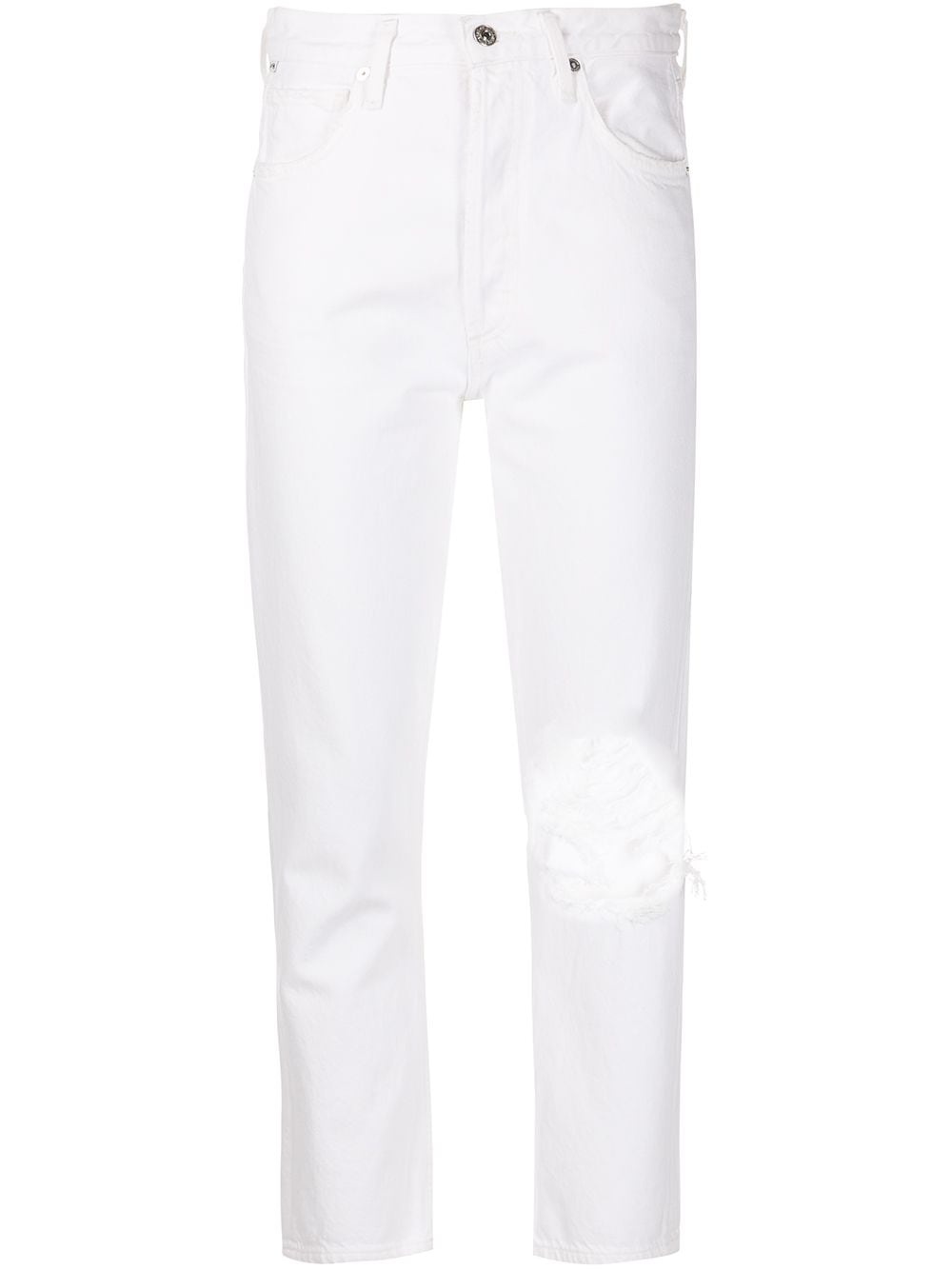 Charlotte straight-leg jeans Highlights - White - Cotton-denim - Ripped detailing - Mid-rise - Button fly fastening - Belt loops - Classic five pockets - Straight leg Made in United States Composition Cotton 100% SIZE & FIT Model measurements Height 5 ft 10 in(1.77 m) Bust/Chest 31.88 in(81 cm) Hips 34.64 in(88 cm) Waist 24.01 in(61 cm) Washing instructions Machine Wash