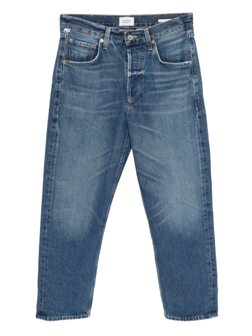 Dahlia jeans Highlights - Indigo blue - Front button and concealed zip fastening - Classic five pockets - Logo patch to the rear Imported Composition Cotton 100% SIZE & FIT Model measurements Height 5 ft 10 in(1.77 m) Bust/Chest 30.7 in(78 cm) Hips 35.82 in(91 cm) Waist 21.25 in(54 cm) FittingInformation Designed for a tapered fit, these jeans allow a close fit at the waist and a loose unrestricted fit over the leg with a closer fit towards the ankle Cropped in length Sturdy and hard-wearing, this denim piece offers no stretch Washing instructions Machine Wash