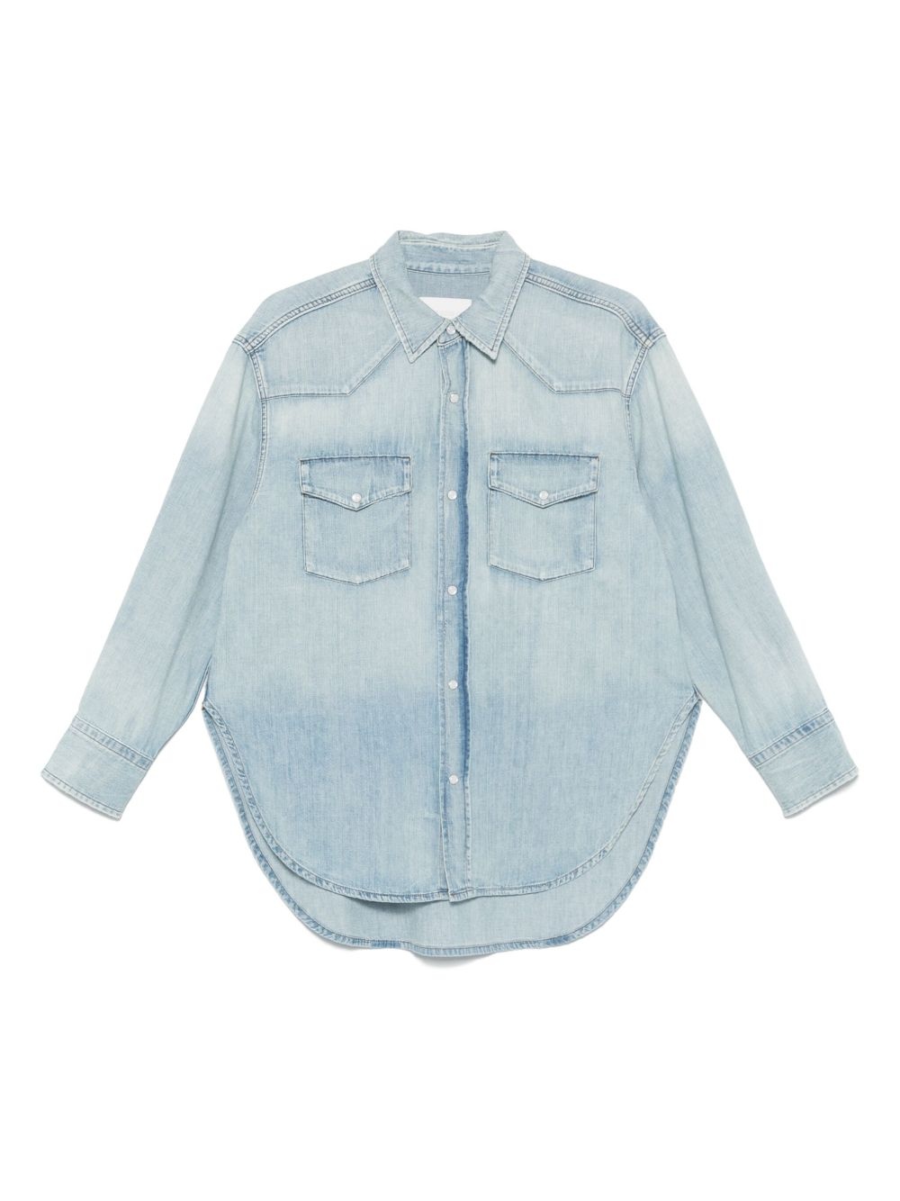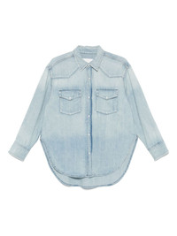 denim shirt Highlights - Light blue - Front press-stud fastening - Two chest flap pockets - Buttoned cuffs - Curved hem Imported Composition Cotton 100% SIZE & FIT Model measurements Height 5 ft 9 in(1.74 m) Bust/Chest 34.64 in(88 cm) Hips 36.61 in(93 cm) Waist 26.37 in(67 cm) FittingInformation Designed to be unstructured, offering a loose fit throughout Sturdy and hard-wearing, this denim piece offers no stretch Washing instructions Machine Wash