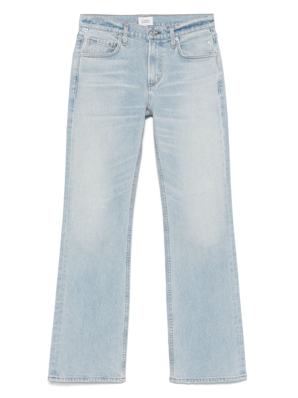 Genova jeans Highlights - Light blue - Concealed fly and button fastening - Classic five pockets - Low-rise - Belt loops Made in United States Composition Cotton 98%, Spandex/Elastane 2% SIZE & FIT Model measurements Height 5 ft 9 in(1.74 m) Bust/Chest 34.64 in(88 cm) Hips 36.61 in(93 cm) Waist 26.37 in(67 cm) FittingInformation Designed with a flared hem, these jeans allow for a close fit at the waist with a slim fit over the leg and widening towards the hem Constructed from stretch denim, this piece offers a stretch fit with durability Washing instructions Machine Wash