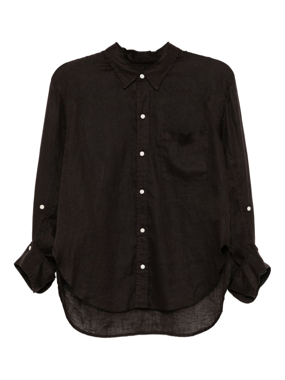 Kayla Shrunken linen shirt Highlights - Chocolate brown - Front buckle fastening - Classic collar - Buttoned-cuff sleeves - Chest patch pocket Made in United States Composition Linen/Flax 100% Washing instructions Machine Wash