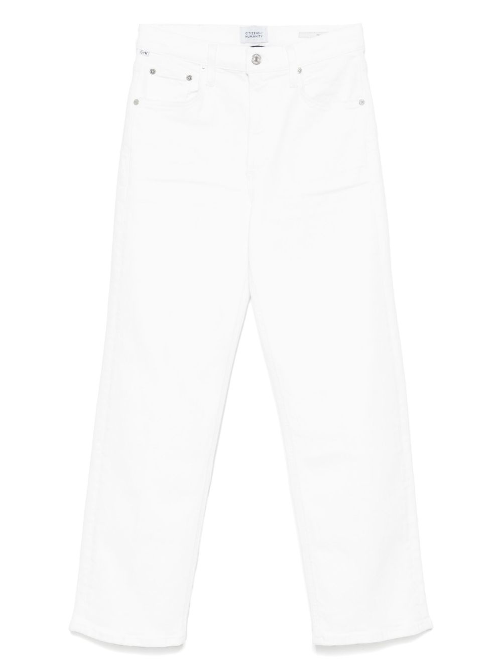 logo-patch jeans Highlights - White - Front button fastening - Belt loops - Classic five pockets - Logo patch to the rear Imported Composition Cotton 94%, Polyester 4%, Elastane 2% SIZE & FIT Model measurements Height 5 ft 9 in(1.75 m) Bust/Chest 34.64 in(88 cm) Hips 36.61 in(93 cm) Waist 26.37 in(67 cm) FittingInformation Designed for a straight-leg fit, these jeans allow for a close fit at the waist and an unrestricted and comfortable fit over the leg Constructed from stretch denim, this piece offers a stretch fit with durability Washing instructions Machine Wash