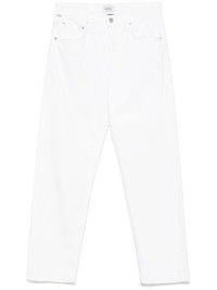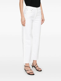 logo-patch jeans Highlights - White - Front button and zip fastening - Belt loops - Classic five pockets - Logo-engraved silver-tone hardware Made in United States Composition Cotton 98%, Polyurethane 2% SIZE & FIT Model measurements Height 5 ft 9 in(1.76 m) Bust/Chest 32.28 in(82 cm) Hips 35.43 in(90 cm) Waist 25.19 in(64 cm) FittingInformation Designed for a straight-leg fit, these jeans allow for a close fit at the waist and an unrestricted and comfortable fit over the leg Constructed from stretch denim, this piece offers a stretch fit with durability
