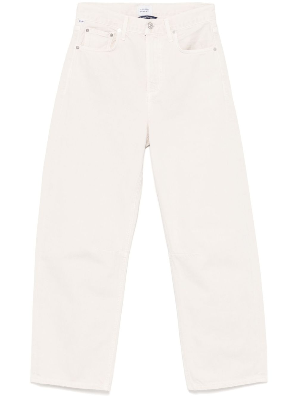 Miro jeans Highlights - Beige - Concealed front button, hook and zip fastening - Classic five pockets Imported Composition Cotton 100% SIZE & FIT Model measurements Height 5 ft 10 in(1.77 m) Bust/Chest 31.49 in(80 cm) Hips 35.43 in(90 cm) Waist 25.19 in(64 cm) FittingInformation Designed with a wide leg cut, these jeans allow for a close fit at the waist and offer a loose and roomy fit over the leg Sturdy and hard-wearing, this denim piece offers no stretch Washing instructions Machine Wash