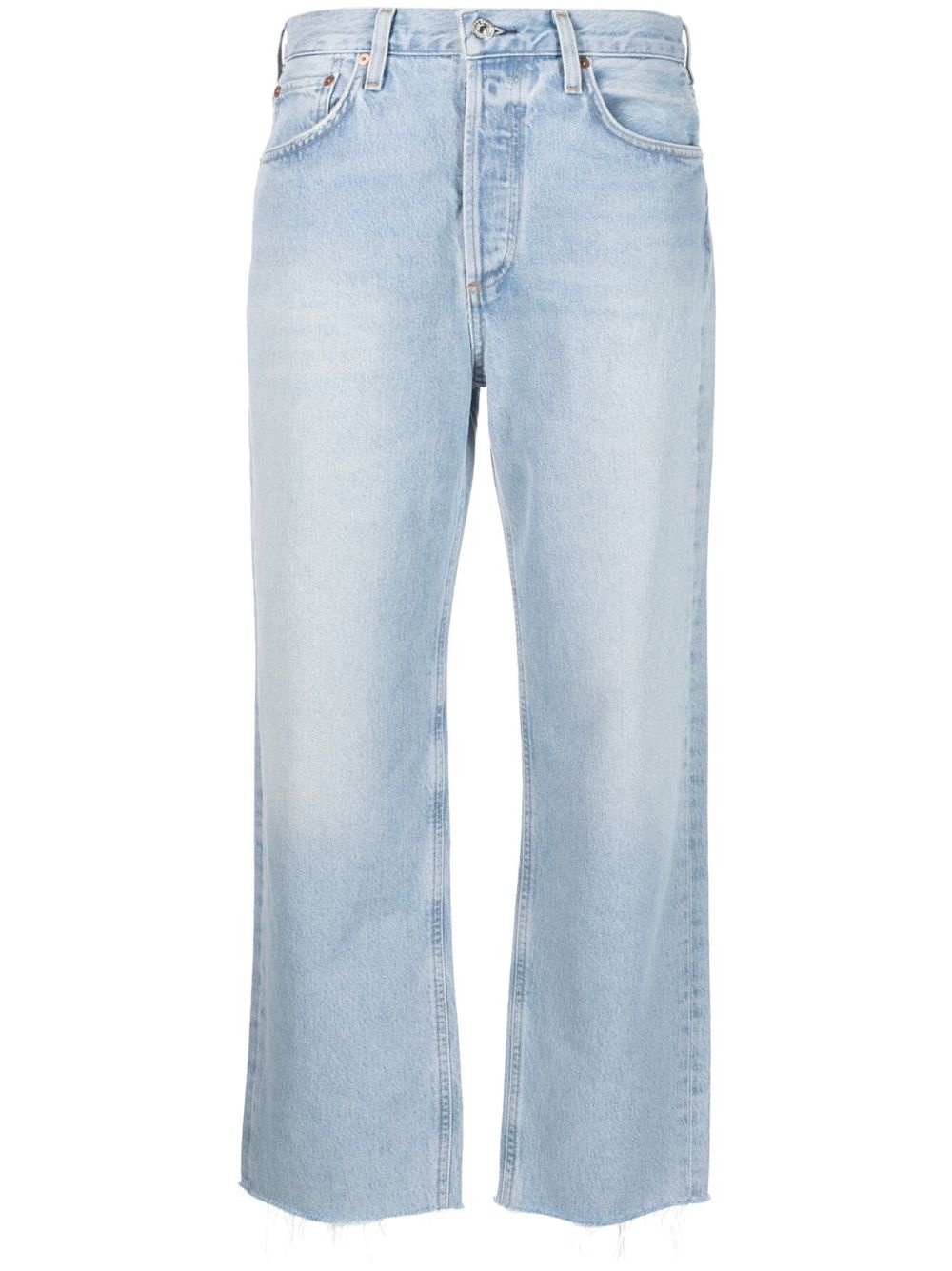 raw-cut hem straight-leg jeans Highlights - Light blue - Organic cotton - Light wash denim - Cropped - Belt loops - Mid-rise - Front button and zip fastening - Straight leg - Classic five pockets - Raw-cut hem Imported Composition Organic Cotton 100% SIZE & FIT Model measurements Height 5 ft 11 in(1.8 m) Bust/Chest 33.07 in(84 cm) Hips 37.4 in(95 cm) Waist 25.19 in(64 cm) FittingInformation Designed with a wide leg cut, these jeans allow for a close fit at the waist and offer a loose and roomy fit over the leg Sturdy and hard-wearing, this denim piece offers no stretch This piece fits true to size – take your usual size Washing instructions Machine Wash