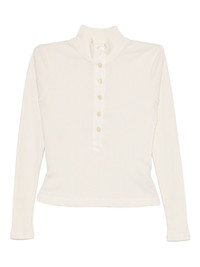 SHEENA HENLEY top Highlights - White - Stand-up collar - Front button fastening - Long sleeves - Straight hem Made in United States Composition Lyocell 49%, Organic Cotton 49%, Spandex/Elastane 2% Washing instructions Hand Wash