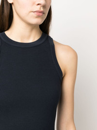 sleeveless ribbed top Citizens of Humanity's creations are rooted in minimalism. Case in point, this ribbed-knit vest top defined by clean lines and lack of decoration. Highlights - Navy blue - Stretch-cotton - Ribbed detailing - Round neck - Sleeveless - Straight hem Made in United States Composition Organic Cotton 49%, Lyocell 49%, Spandex/Elastane 2% SIZE & FIT Model measurements Height 5 ft 11 in(1.8 m) Bust/Chest 31.49 in(80 cm) Hips 36.22 in(92 cm) Waist 25.59 in(65 cm) FittingInformation This piece fits true to size. We recommend you get your regular size Cut for a slim fit Made with a mid-weight stretch fabric Washing instructions Machine Wash