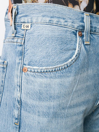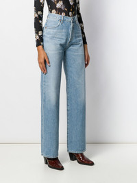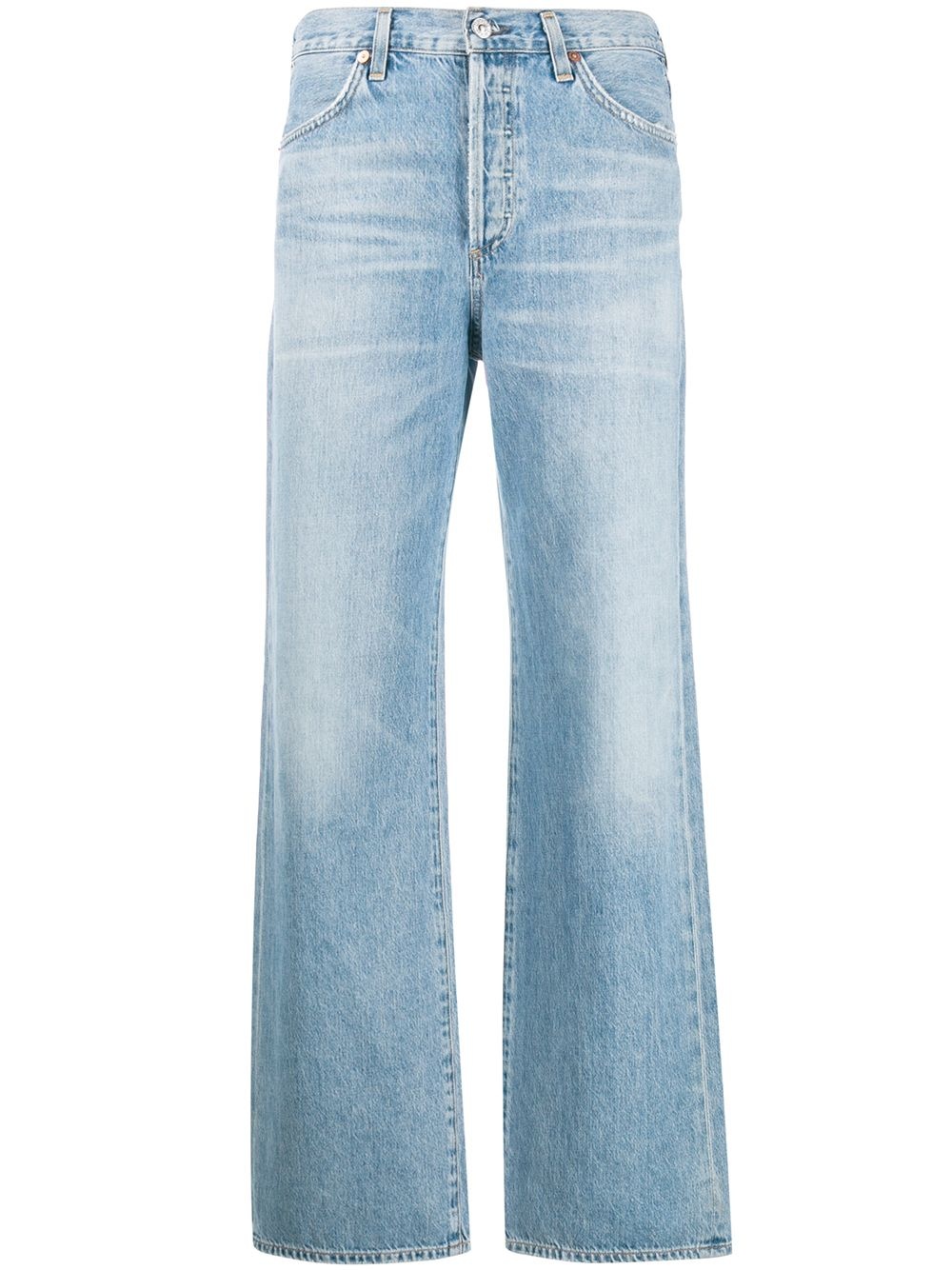 Tula jeans Light blue organic cotton Tula jeans from Citizens Of Humanity featuring a high waist, a button & zip fastening, a waistband with belt loops, a regular length, a wide leg and two front pockets. POSITIVELY CONSCIOUS: At least 50% of the main material of this product meets our conscious criteria. For example, it's either organic, recycled, upcycled or independently recognised as being better for the environment (such as linen, ramie, TENCEL™ etc.). Made in United States Composition Organic Cotton 100% SIZE & FIT Model measurements Height 5 ft 10 in(1.77 m) Bust/Chest 34.25 in(87 cm) Hips 38.58 in(98 cm) Waist 26.37 in(67 cm) Measurement FRONT RISE 11.41 in(29 cm) HIPS 38.58 in(98 cm) WAIST 29.13 in(74 cm) FittingInformation This piece fits true to size. We recommend you get your regular size Designed to be fitted at the waist, loose over the leg Made with a mid-weight non-stretch fabric Washing instructions Machine Wash