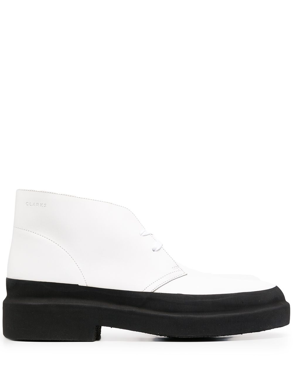 two-tone ankle-boots Last night, we dreamed we were walking down 5th Avenue wearing these black desert boots. Coincidence? We think not. Typical of Clarks Originals, to make our dreams come true. Highlights - White/black - Leather - Two-tone design - Almond toe - Front lace-up fastening - Ankle-length - Branded insole - Low heel - Flat rubber sole Imported Composition Outer: Leather 100% Lining: Leather 100% Sole: Rubber 100% SIZE & FIT Measurement HEEL 2.36 in(6 cm) HEIGHT 3.93 in(10 cm) Sole height 1.18 in(3 cm)