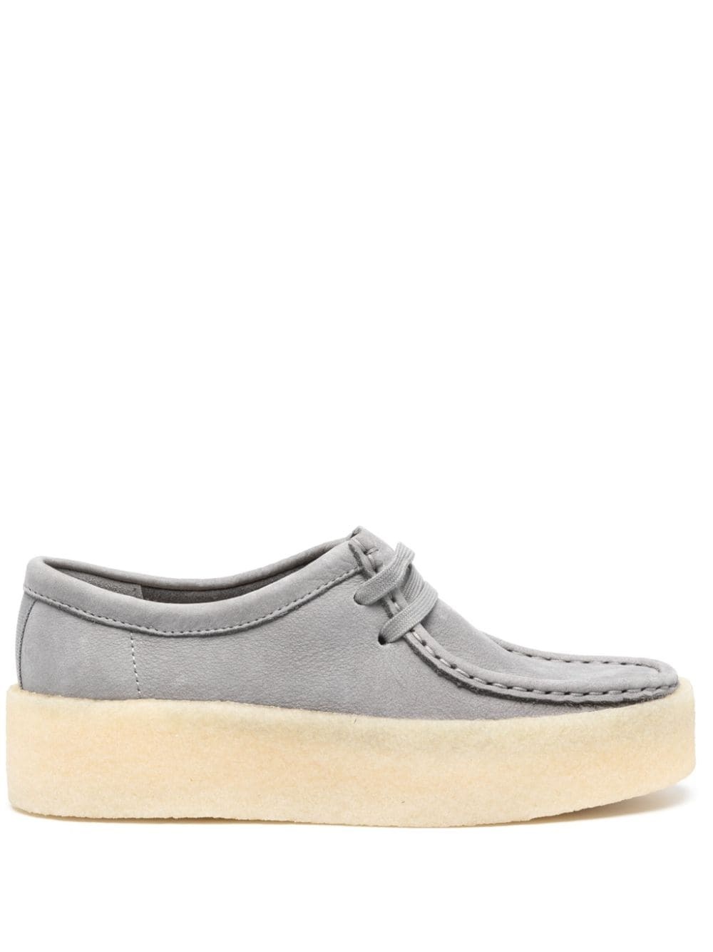 Wallabee Cup loafers Highlights - Grey - Nubuck leather - Square toe - Moc stitching - Decorative stitching - Logo charm - Bead detailing - Branded leather insole - Suede lining - Crepe rubber sole - Front lace-up fastening Imported Composition Outer: Calf Suede 100% Lining: Calf Leather 100% Sole: Rubber 100% SIZE & FIT Measurement HEEL 1.57 in(4 cm) Sole height 1.37 in(3.5 cm)