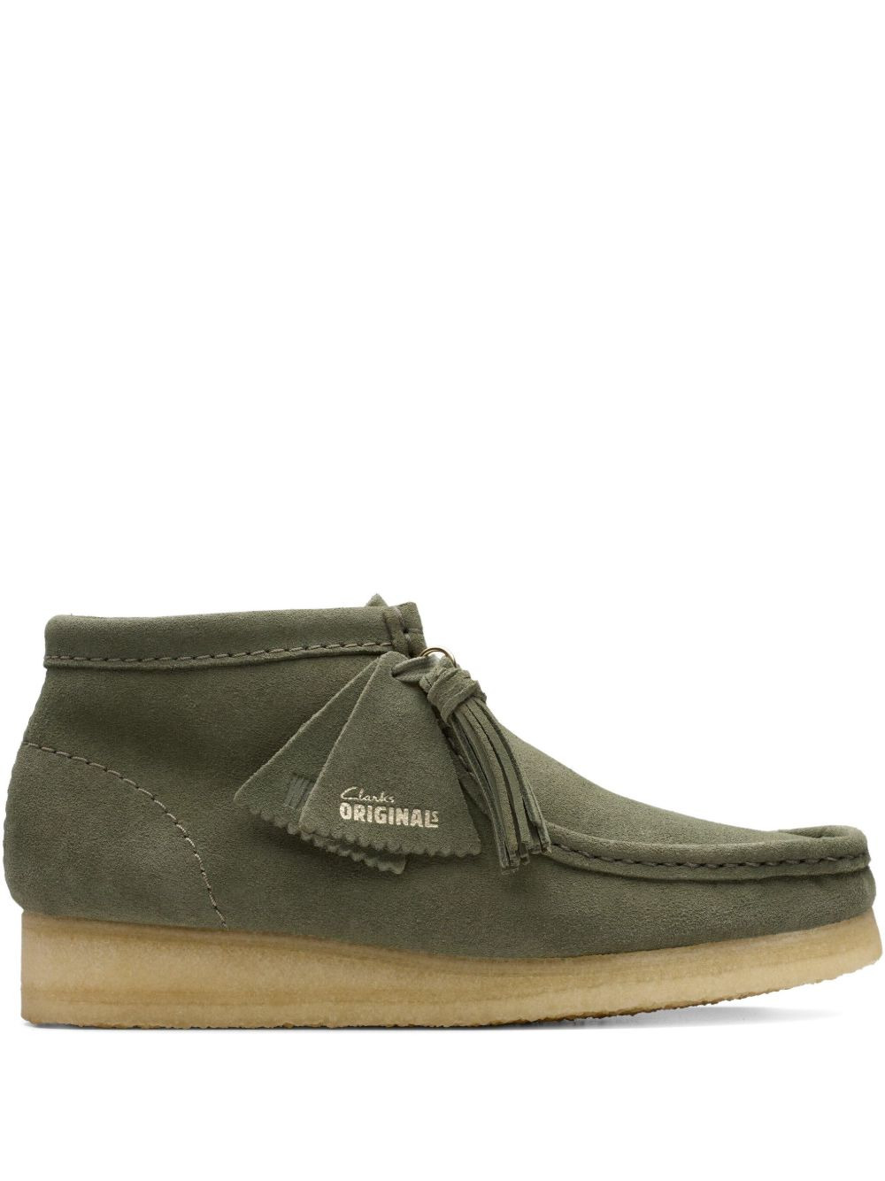 Wallabee "Khaki Green" boots Highlights - Olive green - Suede - Flat sole - Round toe - Lace-up fastening - Tassel detail - These styles are supplied by a premium and authenticated sneaker marketplace. stocking only the most sought-after footwear, they source and curate some of the most hard to find sneakers from around the world. Imported Composition Outer: Suede 100% Lining: Calf Leather 100% Sole: Rubber 100%