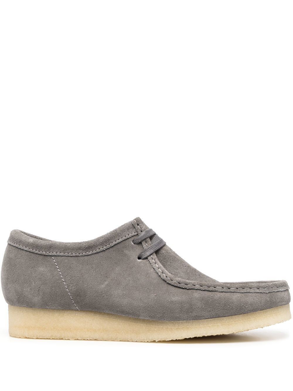 Wallabee suede loafers battleship grey calf leather calf suede flat rubber sole front lace-up fastening square toe branded leather insole Imported Composition Lining: Calf Leather 100% Outer: Calf Suede 100% Sole: Rubber 100% SIZE & FIT Measurement HEEL 1.57 in(4 cm) Sole height 0.98 in(2.5 cm)