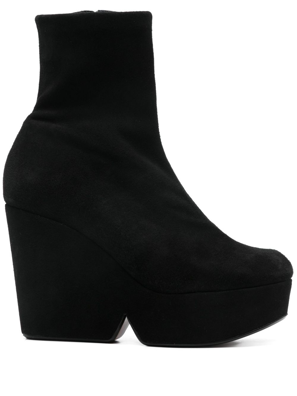 110mm Brenda boots Highlights - Black - Calf suede - Side zip fastening - 110mm wedge heel - Ankle-length - Sock-style ankle - Round toe - Branded leather insole - Faux-leather sole Made in France Composition Lining: Goat Skin 100% Outer: Lamb Suede 100% Sole: Lamb Suede 100% SIZE & FIT Measurement CIRCUMFERENCE 7.87 in(20 cm) HEEL 4.33 in(11 cm) HEIGHT 5.9 in(15 cm) PLATFORM 1.57 in(4 cm)