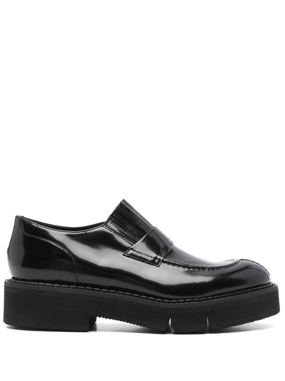 45mm Clark loafers Highlights - Black - Calf leather - Glossy finish - Slip-on style - 45mm block heel - Elasticated panelling - Debossed logo to the side - Almond toe - Branded leather insole - Eva midsole - Rubber outsole Imported Composition Leather 100% SIZE & FIT Measurement HEEL 1.77 in(4.5 cm) Sole height 1.18 in(3 cm)