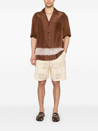Enzo shorts Highlights - Ecru - Elasticated drawstring waistband - Two side slash pockets - Rear patch pocket - Plaid check pattern Imported Composition Viscose 51%, Cotton 27%, Polyamide 13%, Linen/Flax 9% SIZE & FIT Model measurements Height 6 ft 1 in(1.85 m) Bust/Chest 35.82 in(91 cm) Hips 37.79 in(96 cm) Waist 29.13 in(74 cm) FittingInformation Designed for relaxed fit, offering a comfortable loose fit over the leg The elasticated waist allows for a comfortable fit Made from a midweight non-stretch fabric
