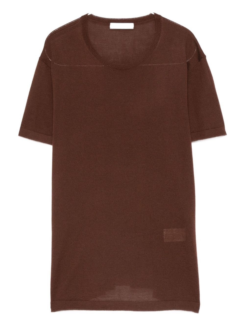 crew-neck T-shirt Highlights - Brown - Short sleeves - Round neck - Straight hem Imported Composition Fabric 100% Washing instructions Read Manufacturer Guidelines