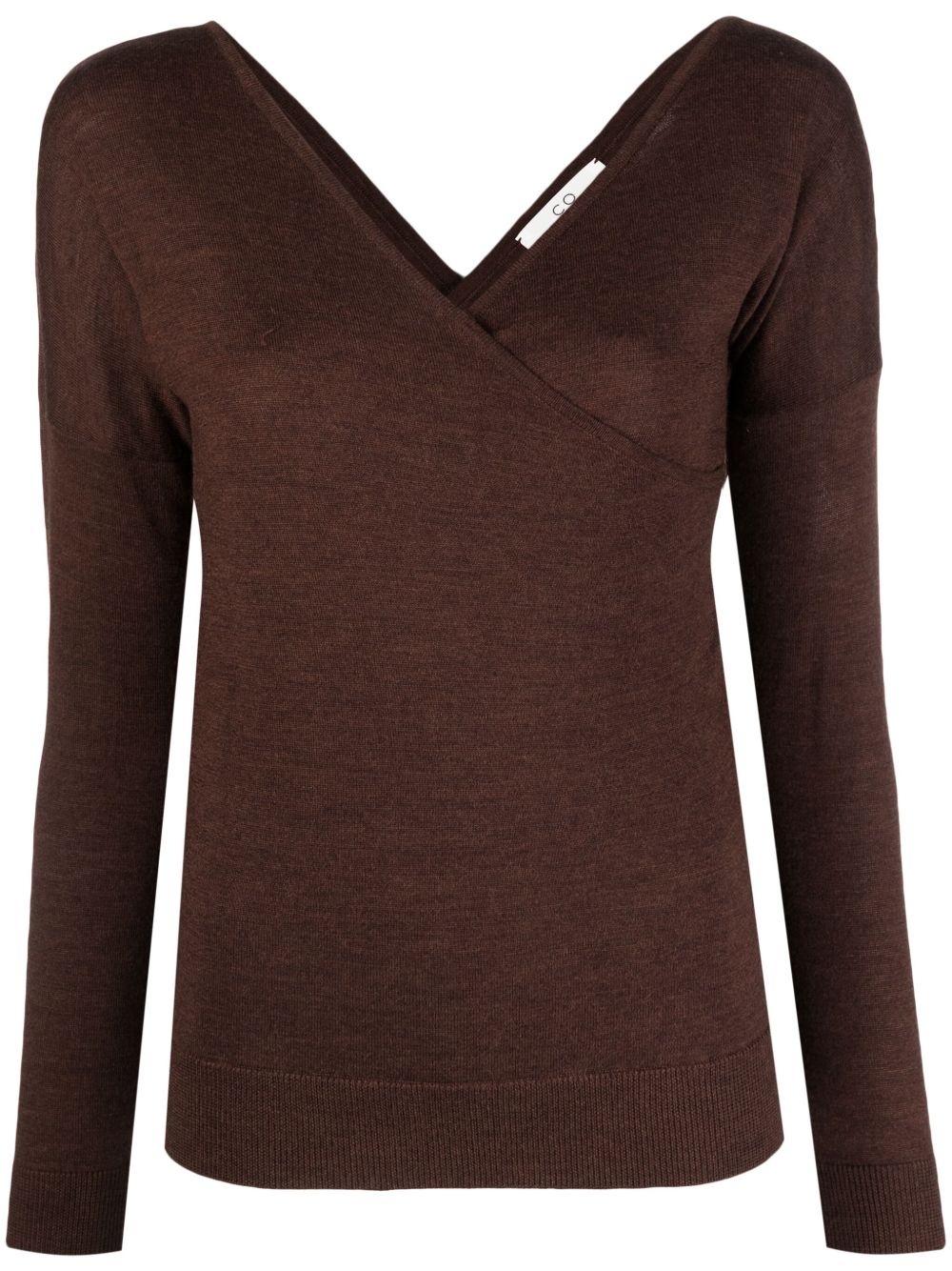 crossover-neck fine-knit jumper Highlights - Coffee brown - Wool - Fine knit - Ribbed-knit edge - Melange effect - Crossover neck - V-back - Drop shoulder - Long sleeves - Straight hem Imported Composition Wool 100%