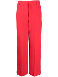 straight-leg cut trousers blood red pressed crease belt loops concealed front fastening two side inset pockets two rear welt pockets Made in Italy Composition Outer: Viscose 100% Lining: Polyester 100% SIZE & FIT Model measurements Height 5 ft 10 in(1.79 m) Bust/Chest 33.07 in(84 cm) Hips 35.82 in(91 cm) Waist 24.01 in(61 cm) FittingInformation This piece fits true to size. We recommend you get your regular size Designed to be fitted at the waist and hips, loose over the leg Made with a mid-weight non-stretch fabric