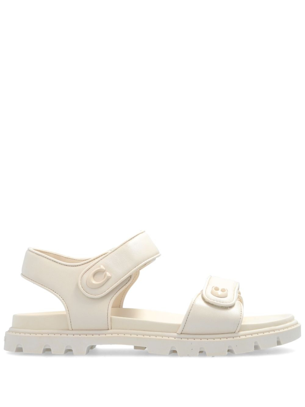 Brynn leather sandals Highlights - Light beige - Leather - Logo plaque - Round open toe - Front touch-strap fastening - Branded footbed - Ridged rubber sole Imported Composition Lining: Fabric 100% Outer: Fabric 100%, Leather 100% Sole: Rubber 100% SIZE & FIT Measurement HEEL 0.98 in(2.5 cm)