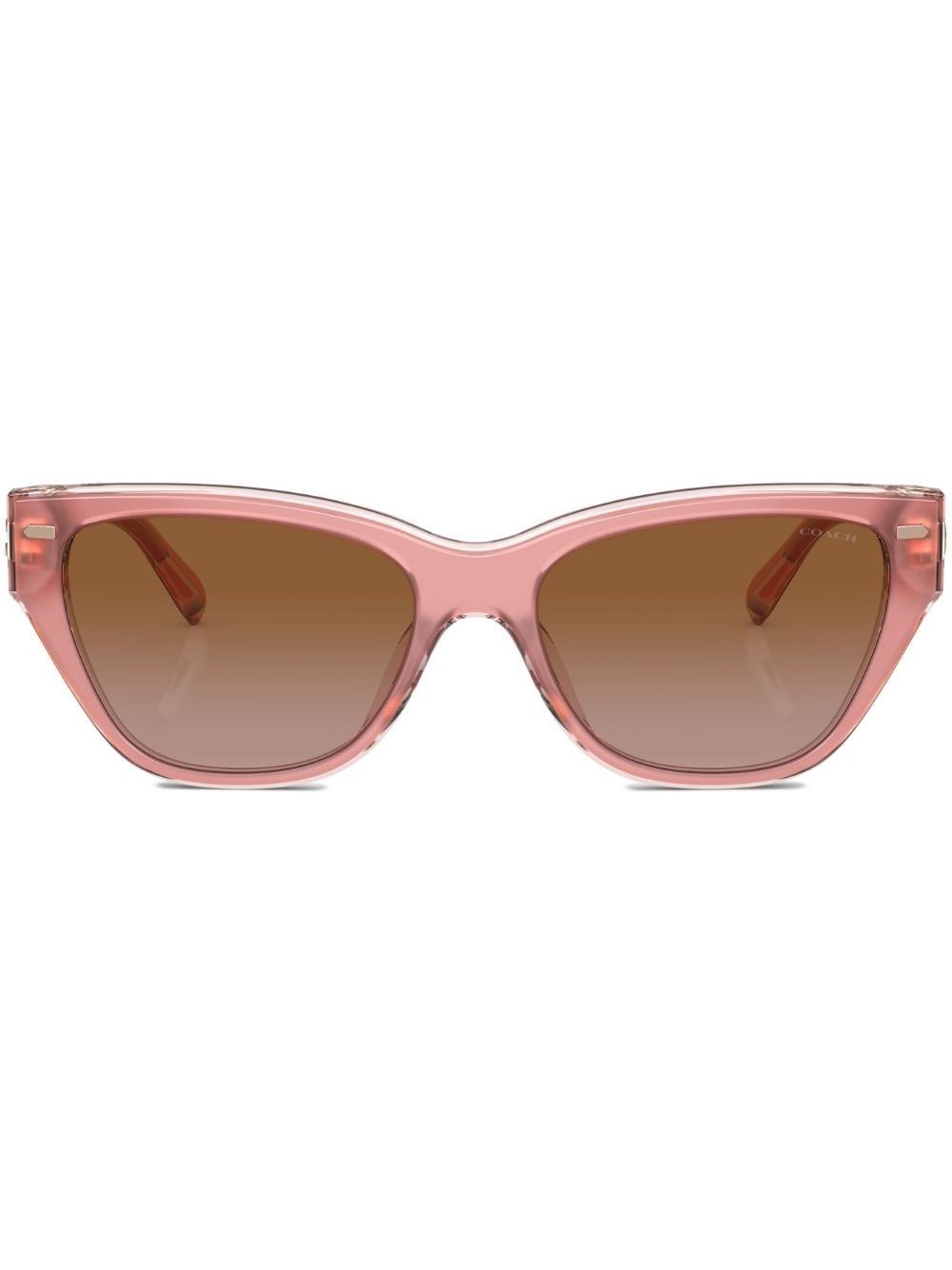 cat eye sunglasses An oversized take on an iconic shape, these Coach cat eye sunglasses offer full UV protection. They're finished with the brand's 'C' hardware at the temple for a heritage touch. Highlights - Pink - Acetate - Gradient lenses - Logo detail at temples - Chunky arms - Curved tips - These glasses come with a protective case. Made in United States Composition Acetate 100% SIZE & FIT Measurement Arm Length 5.7 in(14.5 cm) Bridge Width 0.62 in(1.6 cm) Lens Diameter 2.2 in(5.6 cm)