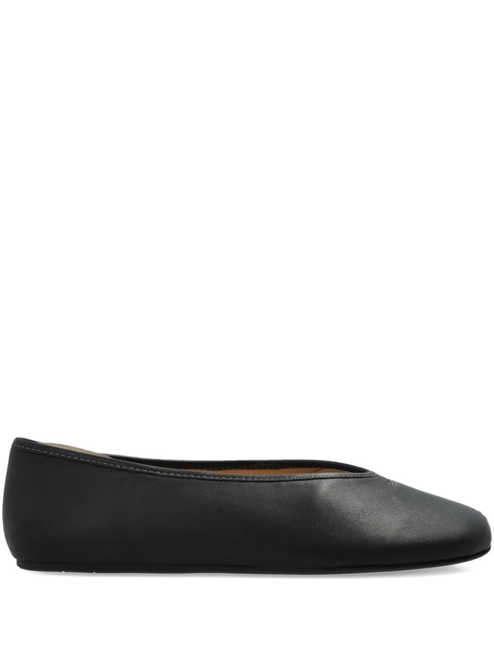 leather ballet flats Highlights - Black - Leather - Square toe - Slip-on style - Branded insole Imported Composition Lining: Leather 100% Outer: Leather 100% Sole: Rubber 100%