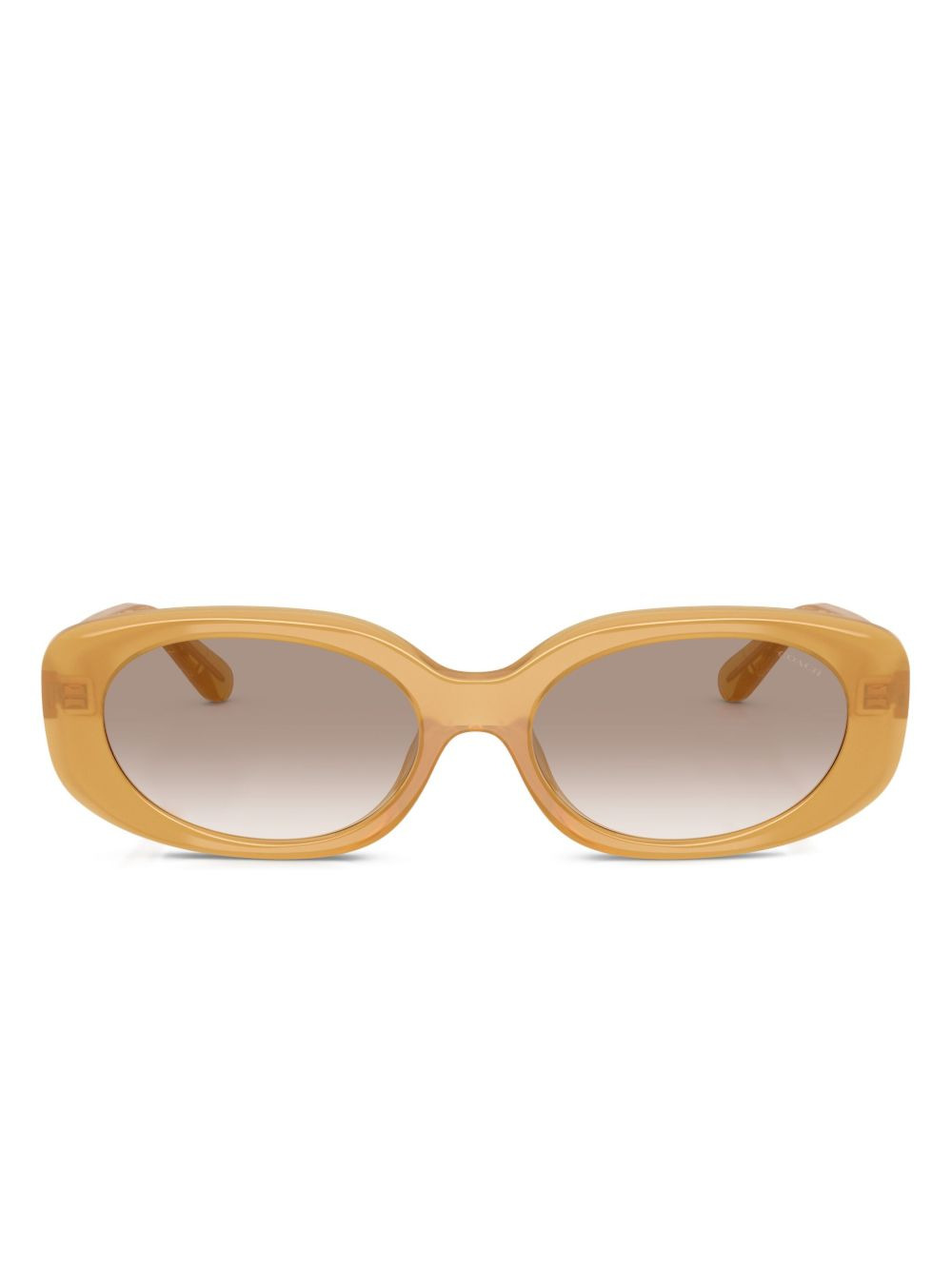 oval-frame logo sunglasses Highlights - Amber - Oval frame - Logo detail temples - Gradient lenses - These glasses come with a protective case. Made in United States Composition Plastic 100% SIZE & FIT Measurement Arm Length 5.7 in(14.5 cm) Bridge Width 0.66 in(1.7 cm) Lens Diameter 2.12 in(5.4 cm)