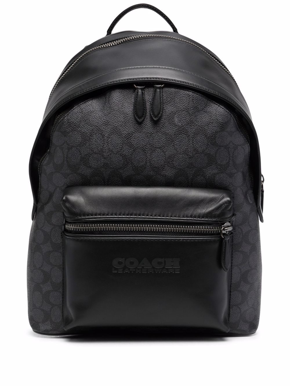 signature canvas backpack black calf leather monogram pattern front patch pocket front two-way zip fastening adjustable shoulder straps single rounded top handle Imported Composition Outer: Calf Leather 100% SIZE & FIT Model measurements Height 6 ft 2 in(1.87 m) Bust/Chest 36.41 in(92.5 cm) Hips 37 in(94 cm) Waist 29.52 in(75 cm) Measurement DEPTH 5.9 in(15 cm) HANDLE 2.36 in(6 cm) HEIGHT 15.74 in(40 cm) STRAP 17.71 in(45 cm) WIDTH 12.2 in(31 cm)