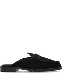 suede slippers Highlights - Black - Round toe - Branded insole - Flat rubber sole - Applique logo Imported Composition Lining: Fabric 100% Outer: Calf Suede 100% Sole: Rubber 100%
