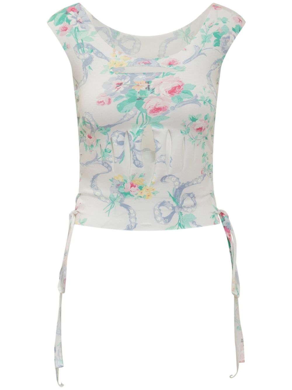 Bunny T-shirt Highlights - White/multicolour - Cotton - Jersey texture - All-over floral print - Round neck - Short sleeves - Cut-out detailing - Adjustable side straps - Straight hem Made in United States Composition Cotton 100%