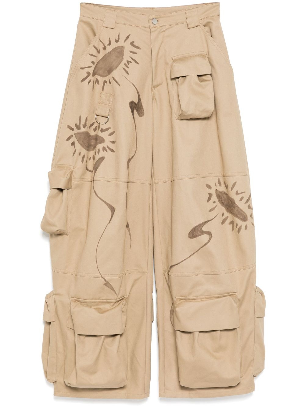 Daisy Garden cargo trousers Highlights - Light beige - Front button and zip fastening - Belt loops - Two side slash pockets - Multiple cargo pockets Made in United States Composition Cotton 100% SIZE & FIT Model measurements Height 5 ft 10 in(1.77 m) Bust/Chest 31.49 in(80 cm) Hips 35.43 in(90 cm) Waist 25.19 in(64 cm) FittingInformation Designed with a wide-leg cut, these trousers allow for a close fit at the waist and offer a loose and roomy fit over the leg Made from a heavyweight non-stretch fabric This piece fits small – take one size up