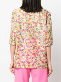 floral-print sequin-detail shirt Highlights - Multicolour - All-over floral print - Sequin detailing - Classic collar - Front button fastening - Short sleeves - Straight hem Made in United States Composition Polyester 95%, Spandex/Elastane 5% SIZE & FIT Model measurements Height 5 ft 10 in(1.78 m) Bust/Chest 31.49 in(80 cm) Hips 36.22 in(92 cm) Waist 25.59 in(65 cm) FittingInformation This piece fits true to size. We recommend you get your regular size Cut for a loose fit Made with a mid-weight stretch fabric