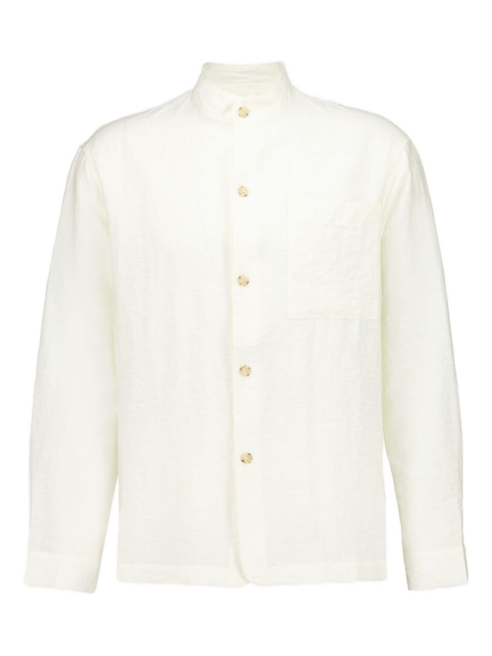 stand-collar long-sleeve shirt Highlights - Off-white - V-neck - Stand collar - Long sleeves - Button fastening - Patch pocket Imported Composition Viscose 54%, Nylon 23%, Hemp 23% Washing instructions Read Manufacturer Guidelines