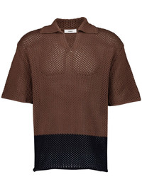 two-tone crochet polo shirt Highlights - Brown/black - Cotton - Two-tone design - Crochet knit - Polo collar - Short sleeves - Curved hem Imported Composition Cotton 100%