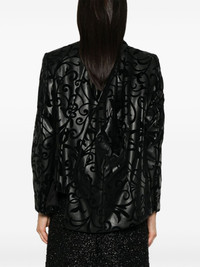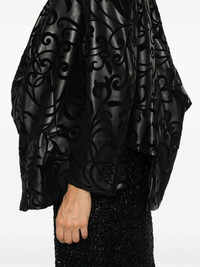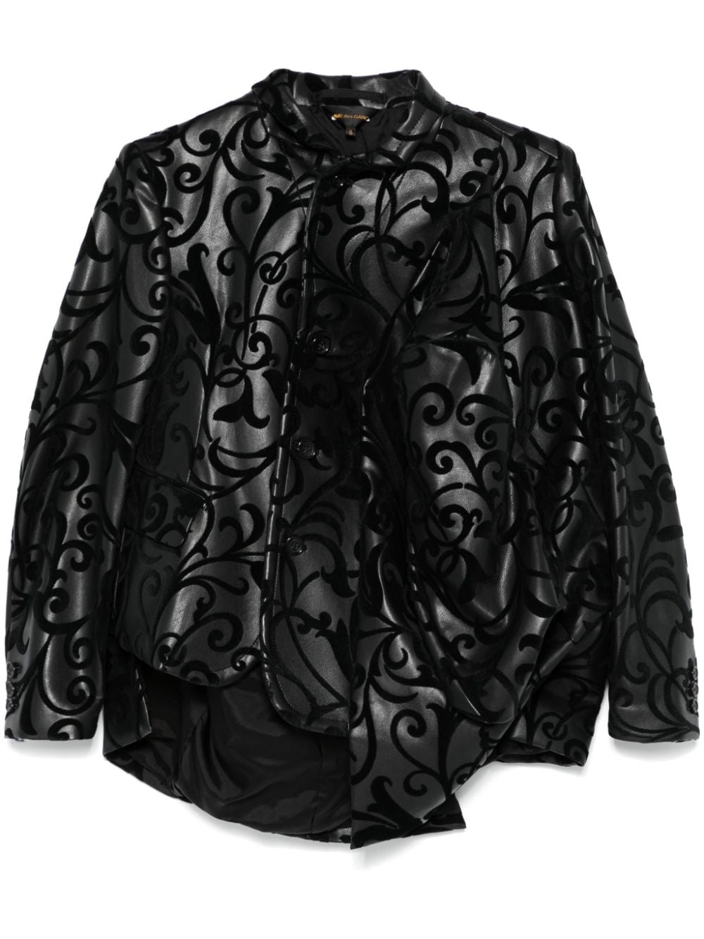 asymmetric blazer Highlights - Black - Faux leather - Asymmetric design - Front button fastening - Flocked detailing - Notched lapels - Shoulder pads - Long sleeves - Buttoned cuffs - Two side flap pockets - Full lining - Asymmetric hem Imported Composition Lining: Rayon 100%, Cupro 100% Outer: Rayon 100%, Polyurethane 100% SIZE & FIT Model measurements Height 5 ft 11 in(1.8 m) Bust/Chest 33.07 in(84 cm) Hips 37.4 in(95 cm) Waist 25.19 in(64 cm) FittingInformation Designed to be unstructured, offering a loose fit throughout Made from a midweight fabric