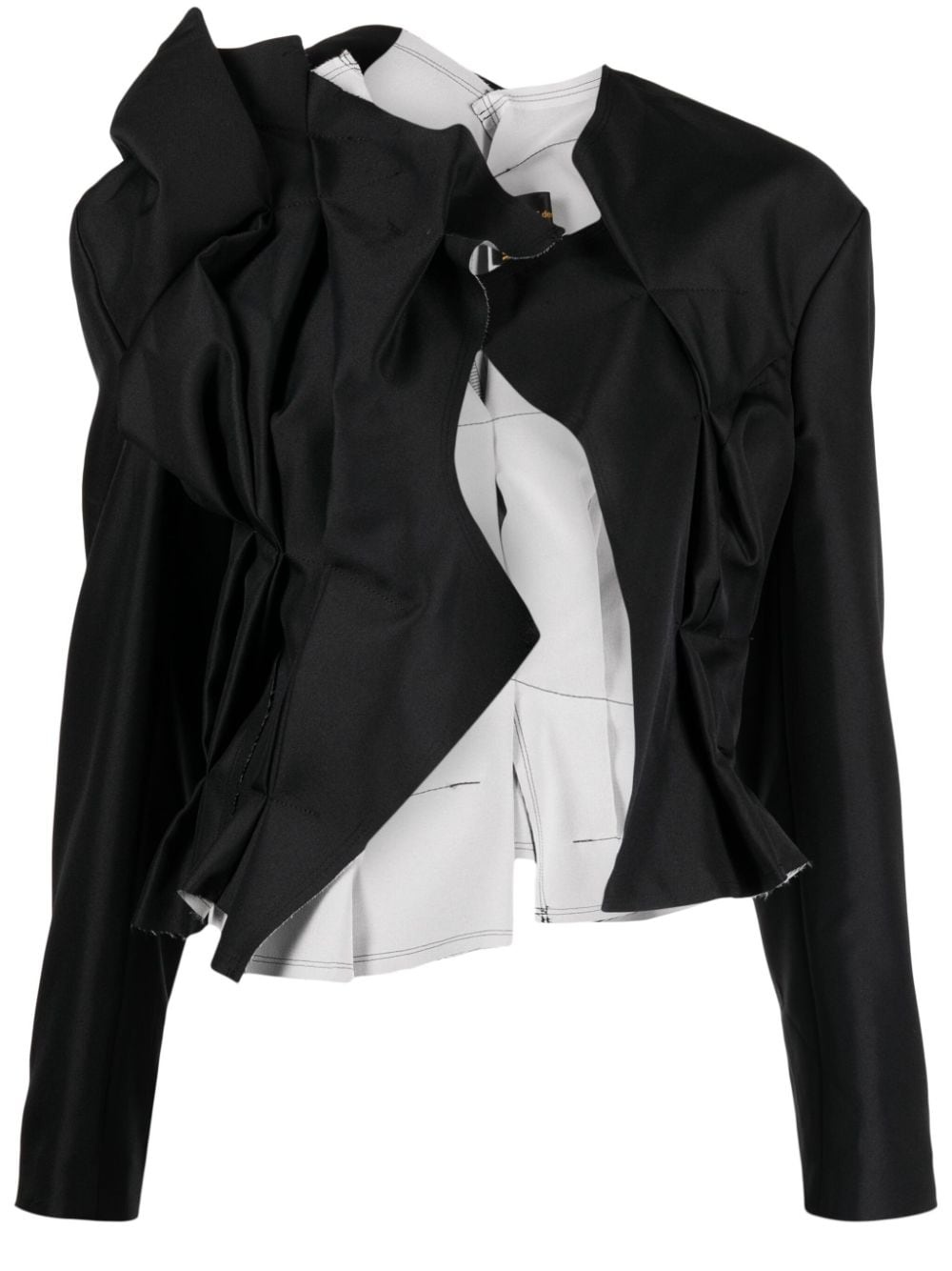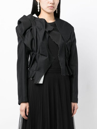 asymmetric layered-detail jacket Highlights - Black - Asymmetric design - Gathered detailing - Layered details - Asymmetric neck - Open front - Long sleeves - Buttoned cuffs - Raw-cut edge - Asymmetric hem Imported Composition Polyester 100% SIZE & FIT Model measurements Height 5 ft 10 in(1.77 m) Bust/Chest 28.74 in(73 cm) Hips 35.82 in(91 cm) Waist 24.4 in(62 cm) FittingInformation Designed for a slim fit that sits just away from the body offering a close yet comfortable fit Made from a midweight non-stretch fabric This piece fits true to size – take your usual size Washing instructions Dry Clean Only