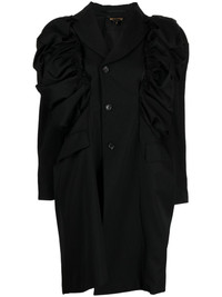 asymmetric oversized blazer black wool asymmetric design gathered detailing notched lapels front button fastening long sleeves buttoned cuffs two front flap pockets asymmetric hem Imported Composition Wool 100% SIZE & FIT Model measurements Height 5 ft 11 in(1.8 m) Bust/Chest 28.34 in(72 cm) Hips 35.43 in(90 cm) Waist 23.62 in(60 cm) FittingInformation This piece fits true to size. We recommend you get your regular size Cut for a loose fit Made with a mid-weight non-stretch fabric