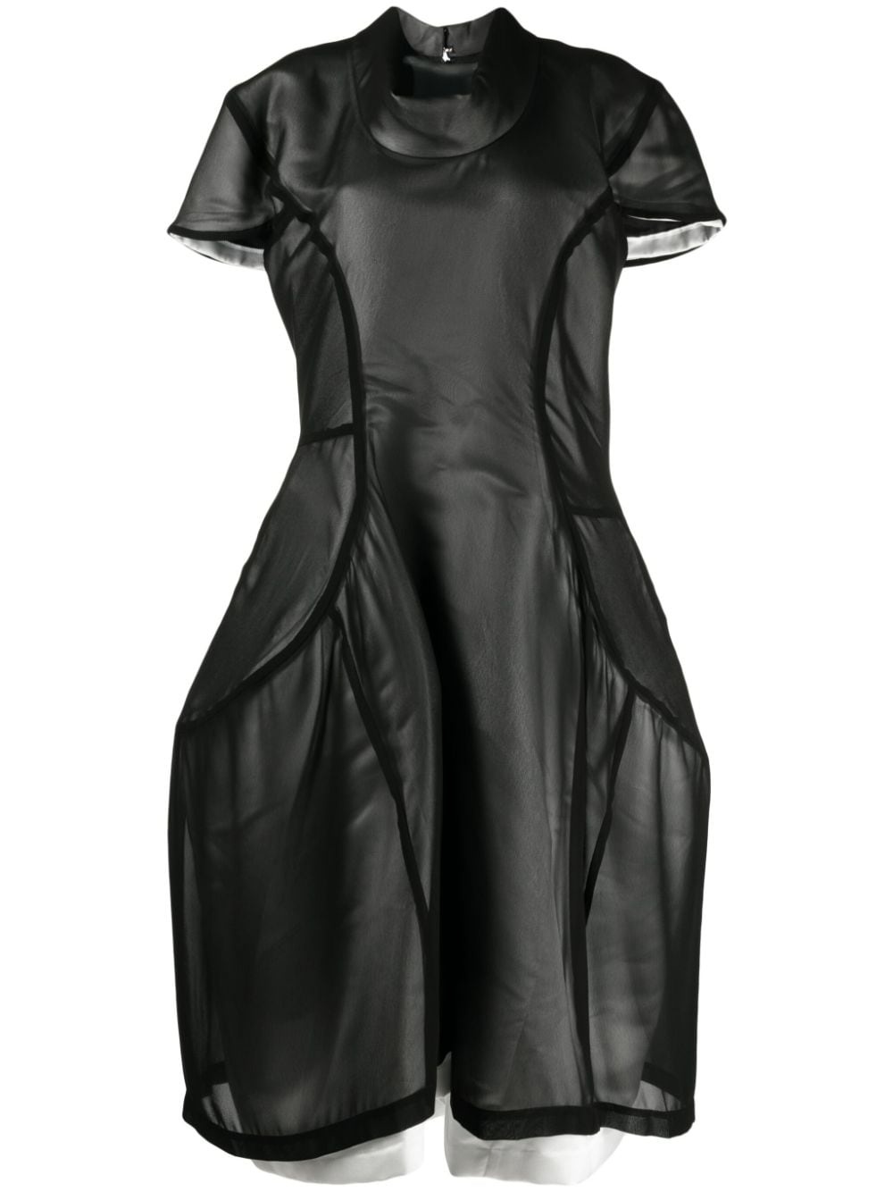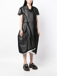 asymmetric panelled midi dress Highlights - Black/white - Asymmetric design - Panelled design - Semi-sheer overlay - Cowl neck - Concealed rear fastening - Short sleeves - Two side slit pockets - Asymmetric hem - Mid-calf length Imported Composition Body: Polyester 100% Lining: Cupro 100% SIZE & FIT Model measurements Height 5 ft 10 in(1.77 m) Bust/Chest 28.74 in(73 cm) Hips 35.82 in(91 cm) Waist 24.4 in(62 cm) FittingInformation Designed to be unstructured, offering a loose fit throughout Made from a heavyweight non-stretch fabric This piece fits true to size – take your usual size Washing instructions Dry Clean Only