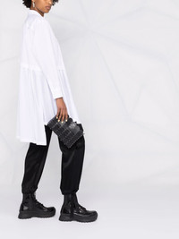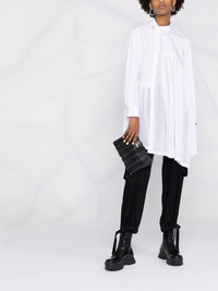 asymmetric pleated shirt white cotton straight-point collar off-centre front button fastening long sleeves asymmetric hem pleat detailing Imported Composition Polyester 100%, Cotton 100% SIZE & FIT Model measurements Height 5 ft 11 in(1.8 m) Bust/Chest 31.49 in(80 cm) Hips 35.82 in(91 cm) Waist 24.8 in(63 cm) FittingInformation This piece fits true to size. We recommend you get your regular size Cut for a loose fit Made with a mid-weight non-stretch fabric Washing instructions Hand Wash
