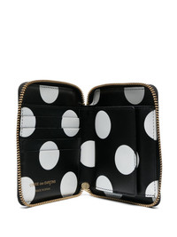 bi-fold leather wallet Highlights - Black - Calf leather - Gold-tone hardware - Bi-fold design - All-around zip fastening - Polka dot print - Internal logo stamp - Internal card slots - Internal flap pocket - Main compartment Imported Composition Outer: Calf Leather 100% SIZE & FIT Measurement DEPTH 0.78 in(2 cm) LENGTH 4.72 in(12 cm) WIDTH 3.93 in(10 cm)