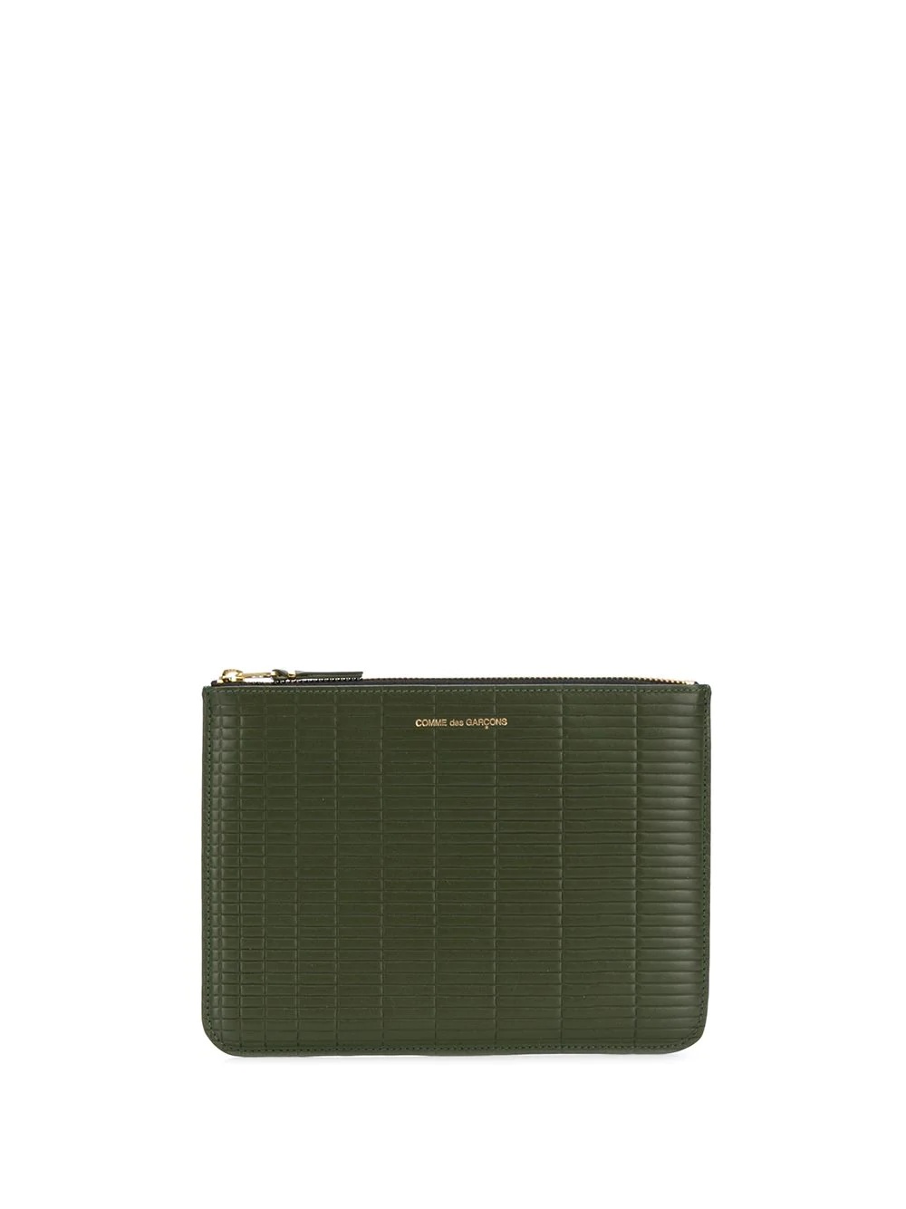 Brick Line wallet Highlights - Khaki green leather brick line purse from comme des garcons wallet featuring a front centre logo stamp, a gold-tone top zip fastening and a main internal compartment. Imported Composition Outer: Calf Leather 100% SIZE & FIT Measurement DEPTH 0.39 in(1 cm) LENGTH 8.66 in(22 cm) WIDTH 6.29 in(16 cm)