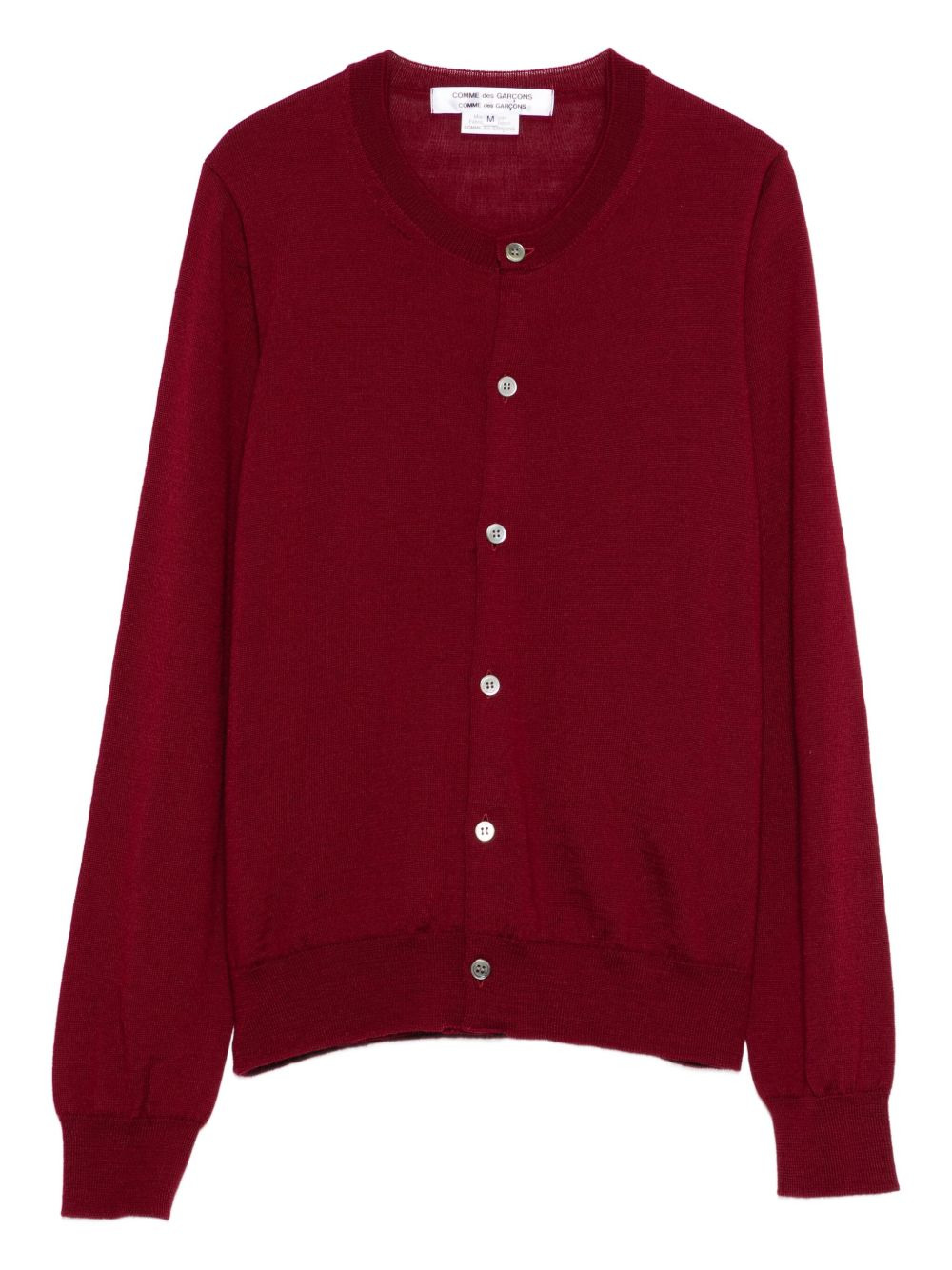 button-front cardigan Highlights - Burgundy - Round neck - Long sleeves - Button fastening - Ribbed cuffs - Ribbed hem Imported Composition Wool 100% Washing instructions Read Manufacturer Guidelines