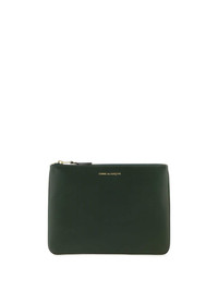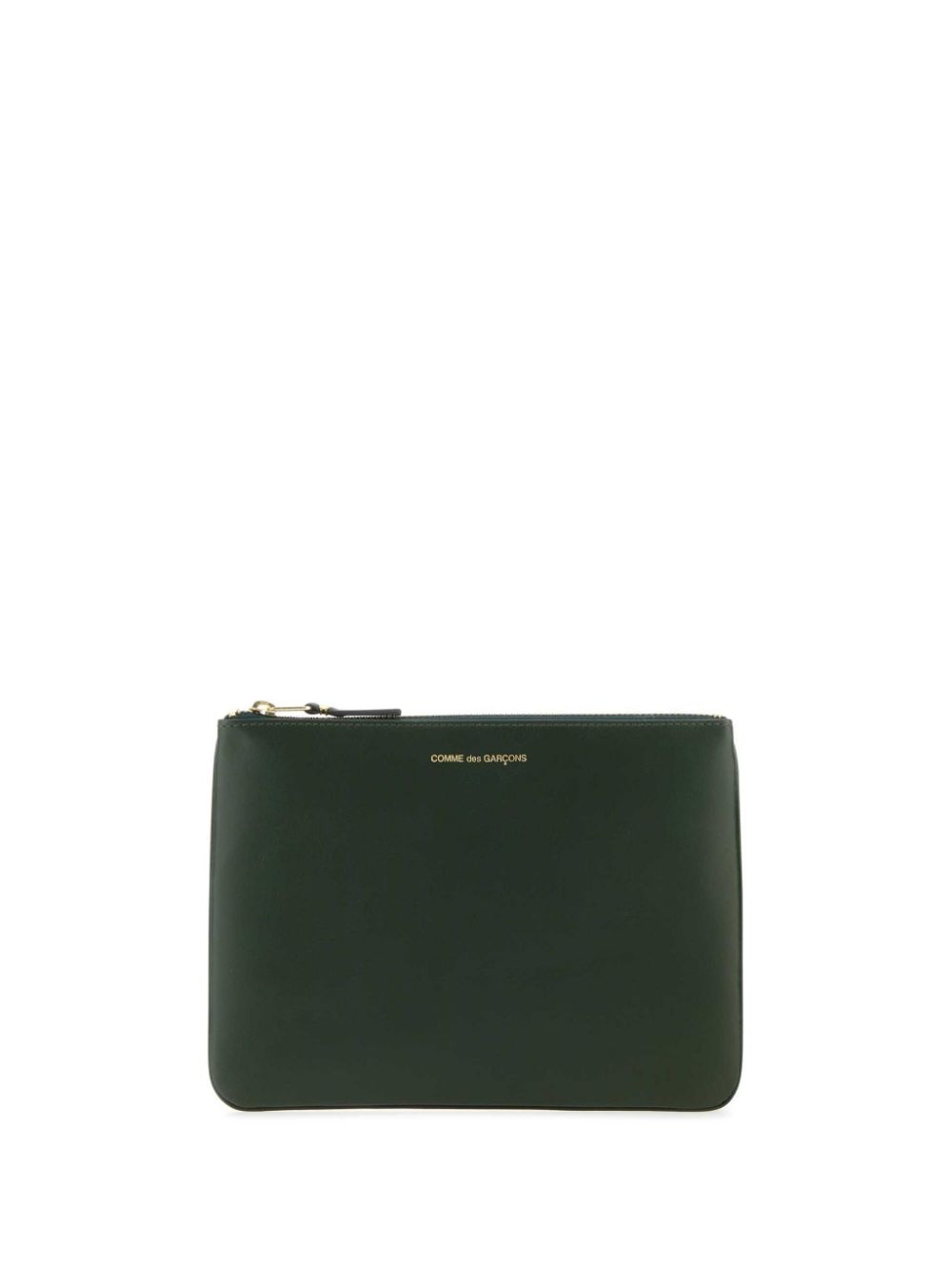 logo-print leather pouch Highlights - Green - Calf leather - Logo stamp to the front - Top zip fastening - Main compartment Imported Composition Outer: Calf Leather 100% SIZE & FIT Measurement WIDTH 6.29 in(16 cm) LENGTH 8.34 in(21.2 cm)