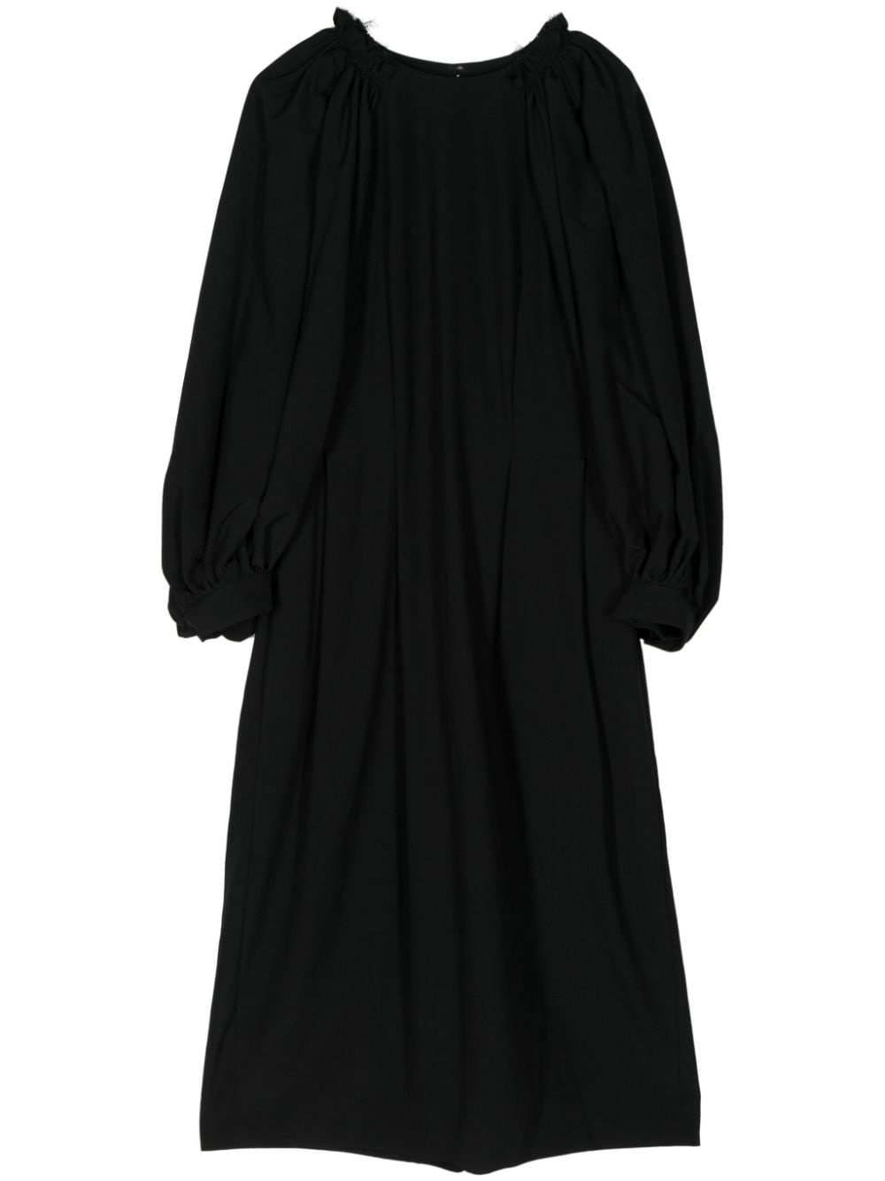 Crease Effect Midi Dress Highlights - Black - Wool - Long sleeves - Crease effect - Crew neck Imported Composition Filling: Nylon 100% Outer: Wool 100% Lining: Cupro 100%