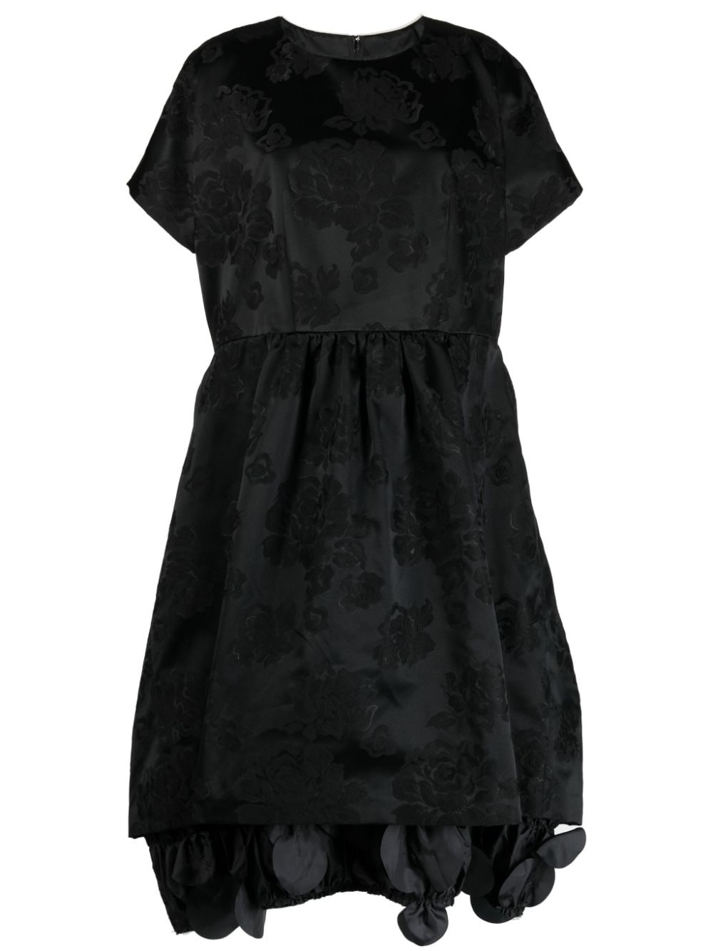 floral-applique bell-shape midi dress Highlights - Black - Floral applique - Bell-shape design - Crew neck - Rear zip fastening - Short sleeves - Below-knee length - Straight hem Imported Composition Lining: Polyester 100% Outer: Polyester 100% SIZE & FIT Model measurements Height 5 ft 9 in(1.76 m) Bust/Chest 31.1 in(79 cm) Hips 35.03 in(89 cm) Waist 24.4 in(62 cm) FittingInformation Designed to be unstructured, offering a loose fit throughout Made from a midweight non-stretch fabric This piece fits true to size – take your usual size Washing instructions Dry Clean Only