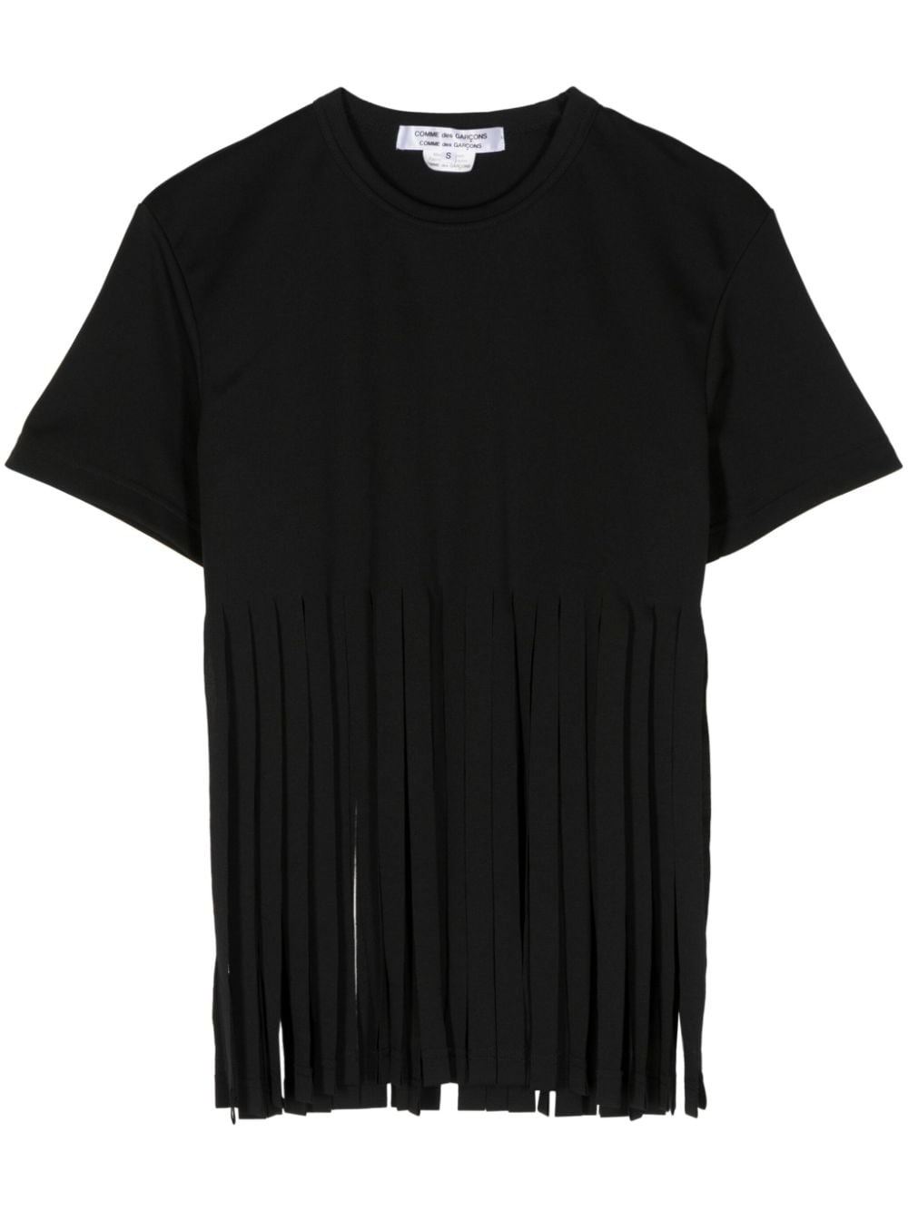 fringe-detail jersey T-shirt Highlights - Black - Jersey texture - Fringe detailing - Crew neck - Short sleeves - Straight hem Imported Composition Polyester 100%