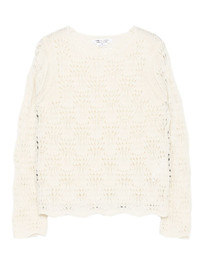 knitted top Highlights - Ivory white - Crew neck - Long sleeves Imported Composition Alpaca 52%, Nylon 36%, Wool 12% Washing instructions Dry Clean Only