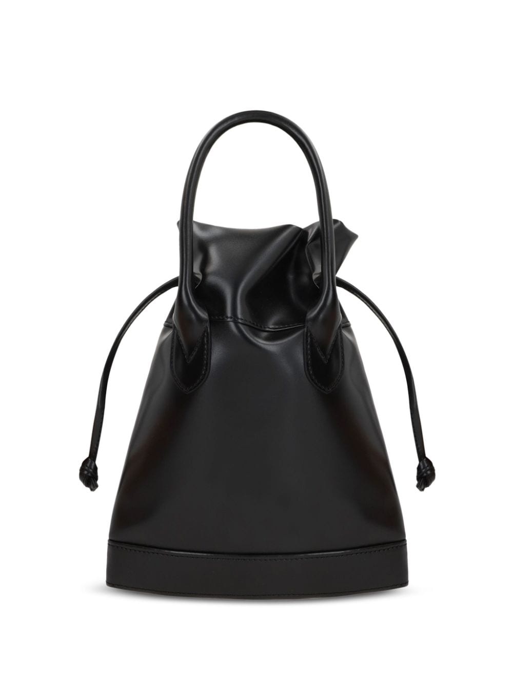 leather bucket bag Highlights - Black - Faux leather - Top drawstring fastening - Single rolled top handle - Main compartment - Full lining Imported Composition Outer: Polyurethane 100% SIZE & FIT Measurement DEPTH 2.75 in(7 cm) HANDLE 3.93 in(10 cm) HEIGHT 9.05 in(23 cm) WIDTH 7.87 in(20 cm)