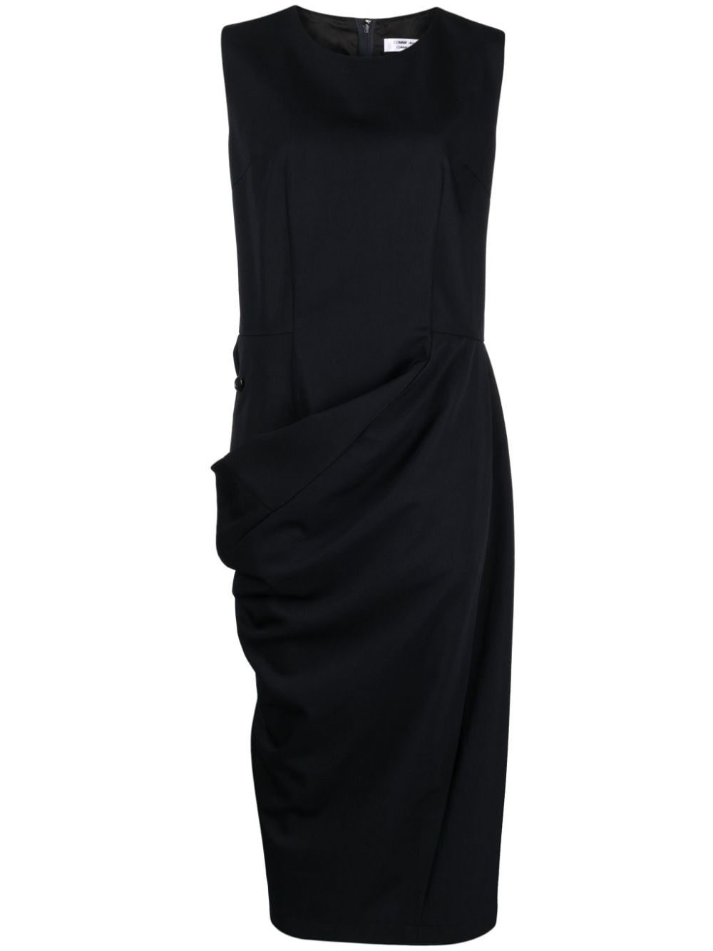 round-neck sleeveless midi dress Highlights - Black - Wool - Knitted construction - Rear zip fastening - Round neck - Sleeveless - Button fastening - Wrap design - Mid-length - Straight hem Imported Composition Wool 100% SIZE & FIT Model measurements Height 5 ft 10 in(1.79 m) Bust/Chest 31.49 in(80 cm) Hips 34.64 in(88 cm) Waist 22.83 in(58 cm) Washing instructions Dry Clean Only